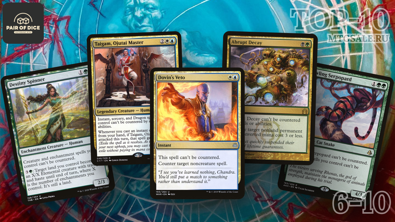 Очень часто, в ответ на какие-либо синергии и комбинации мы получаем ответ об их отмене или разыгрывании заклинаний, которые обходят определенные запреты и не могут быть отменены. Поэтому, в этой статье мы подобрали для вас 10 карт с нашего сайта, которые помогут вам в этом. Кликайте на название карты и переходите на сайт.
